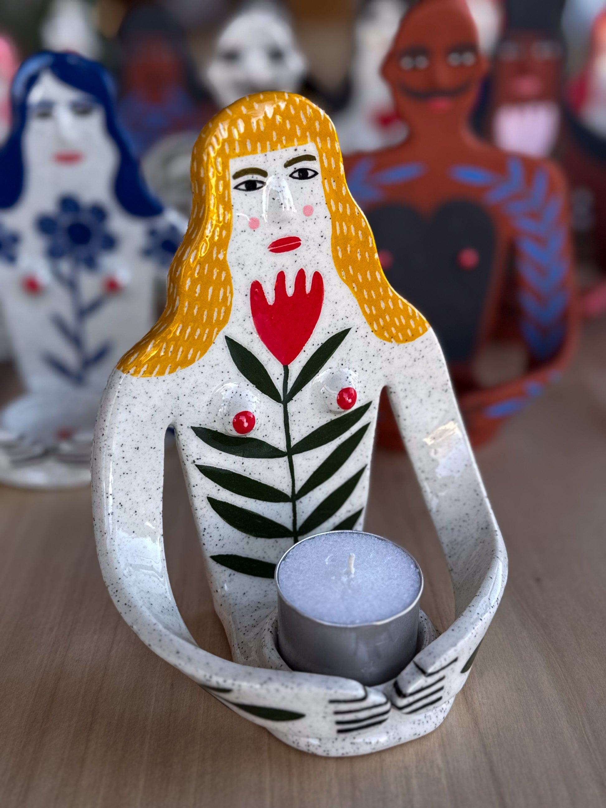 Candle Holder - lady and a red tulip